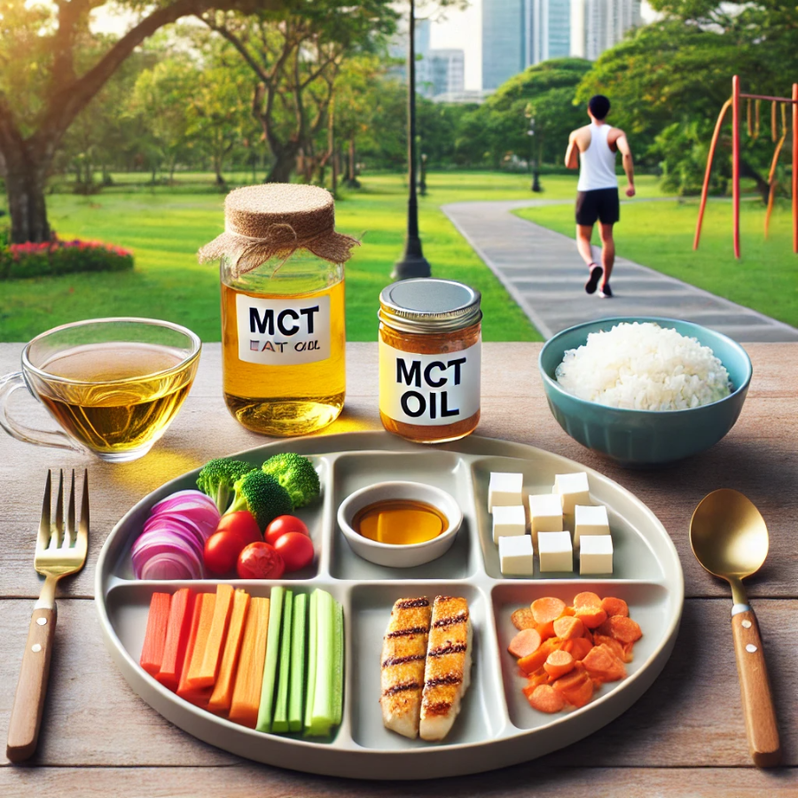 식사를 하기 전에 건강한 지방을 식단에 추가하면 탄수화물 흡수가 느려질 수 있습니다. MCT 오일에서 발견되는 중쇄 트리글리세리드(MCT)는 에너지로 빠르게 대사되고 혈당 수치를 높이지 않기 때문에 특히 효과적입니다.