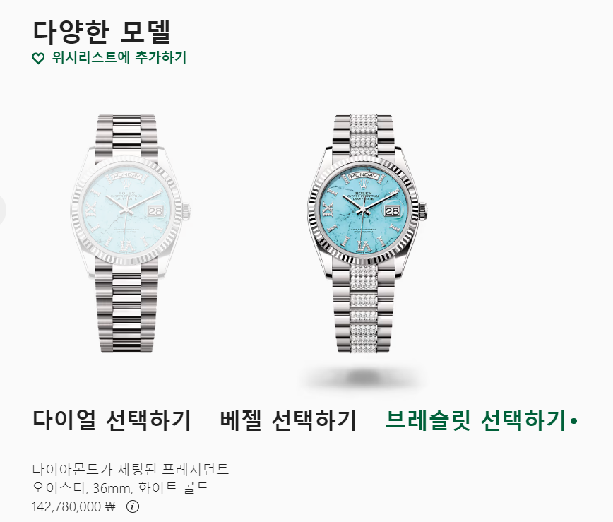 롤렉스 시계는 다이얼(시계판)과 베젤(시계판 테두리), 브레슬릿(손목줄)의 옵션에 따라 가격이 달라지며, 한화 800만원대에서 억대가 넘는 고가까지 다양한 선택지가 있습니다.