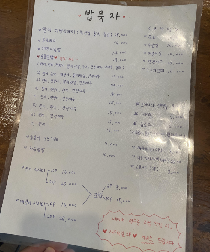손으로 쓴 메뉴판도 정겹게 느껴지네요.