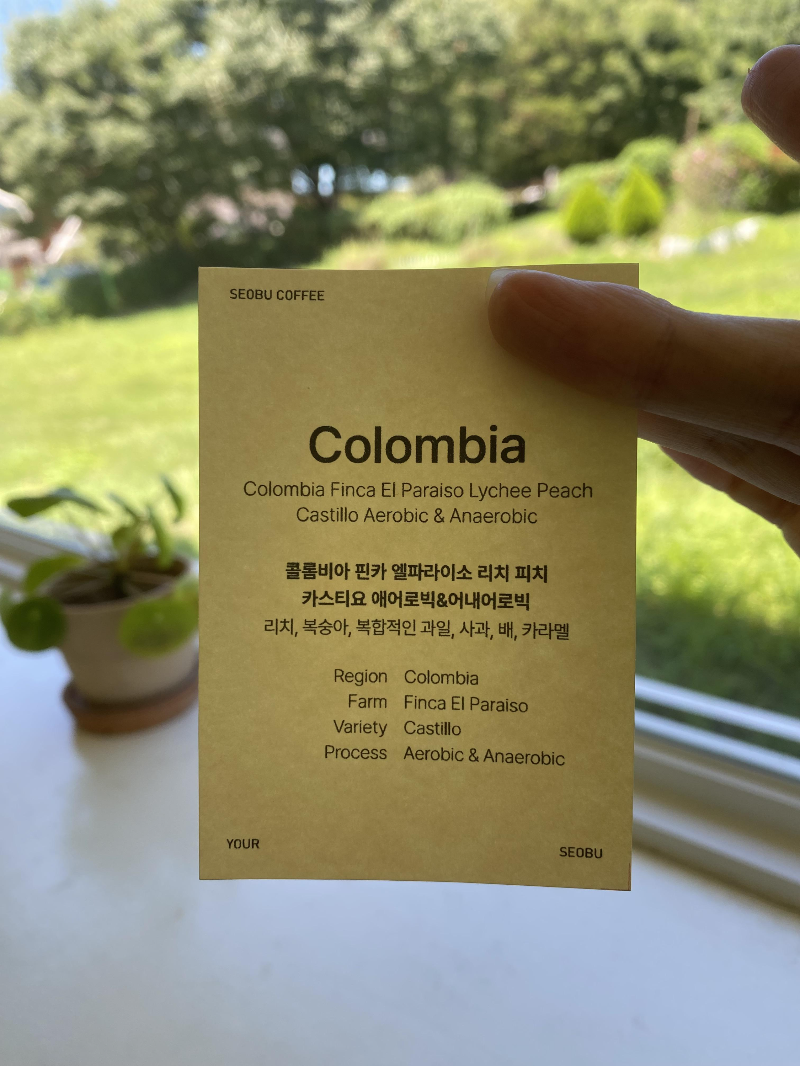 오늘 저의 선택은 '콜롬비아 핀카 엘파라이소 리치 피치' 라는 긴 이름의 원두입니다.