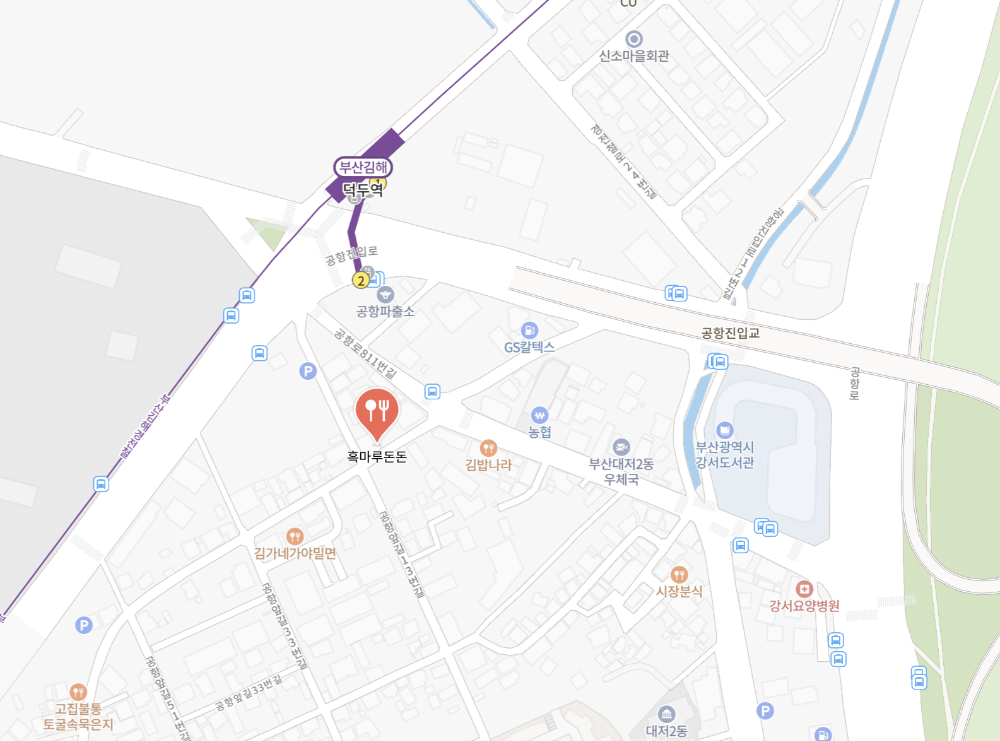 흑마루 돈돈은 김해공항에서 아주 가까운 거리에 위치해 있어요. 실제로 위치는 김해공항 셔틀 버스 정류장에서 가까워서 비행기 타기 전이나 여행 다녀온 후에 방문하기 딱 좋은 곳이에요. 경전철 덕두역 2번 출구에서도 도보로 3분 가량의 거리라서 접근성도 정말 훌륭해요. 공항 근처에서 맛있는 음식 찾아 헤매는 분들은 이곳으로 오시면 딱이랍니다.