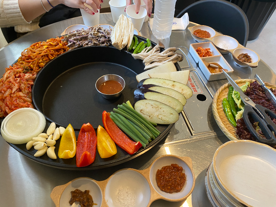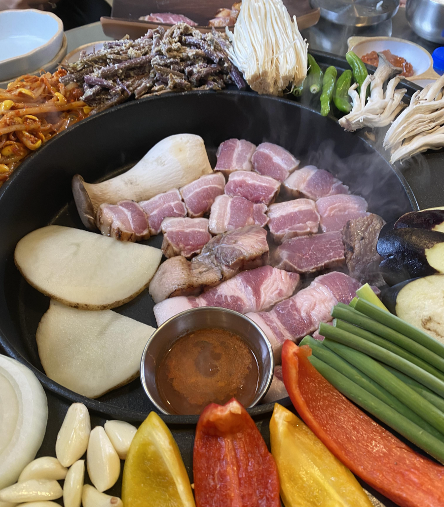 고기와 야채를 함께 구우면서 먹는 것이 난로회담의 매력 중 하나예요. 야채가 신선해서 고기와 함께 구워지면 정말 맛있어요. 삼겹살과 목살은 아주 부드럽고 육즙 가득하며 촉촉합니다. 그리고 이집 별미 중 하나가 들깨가루에 무친 고사리 나물이었는데 너무 맛있어서 두번이나 리필을 해 먹었어요.
