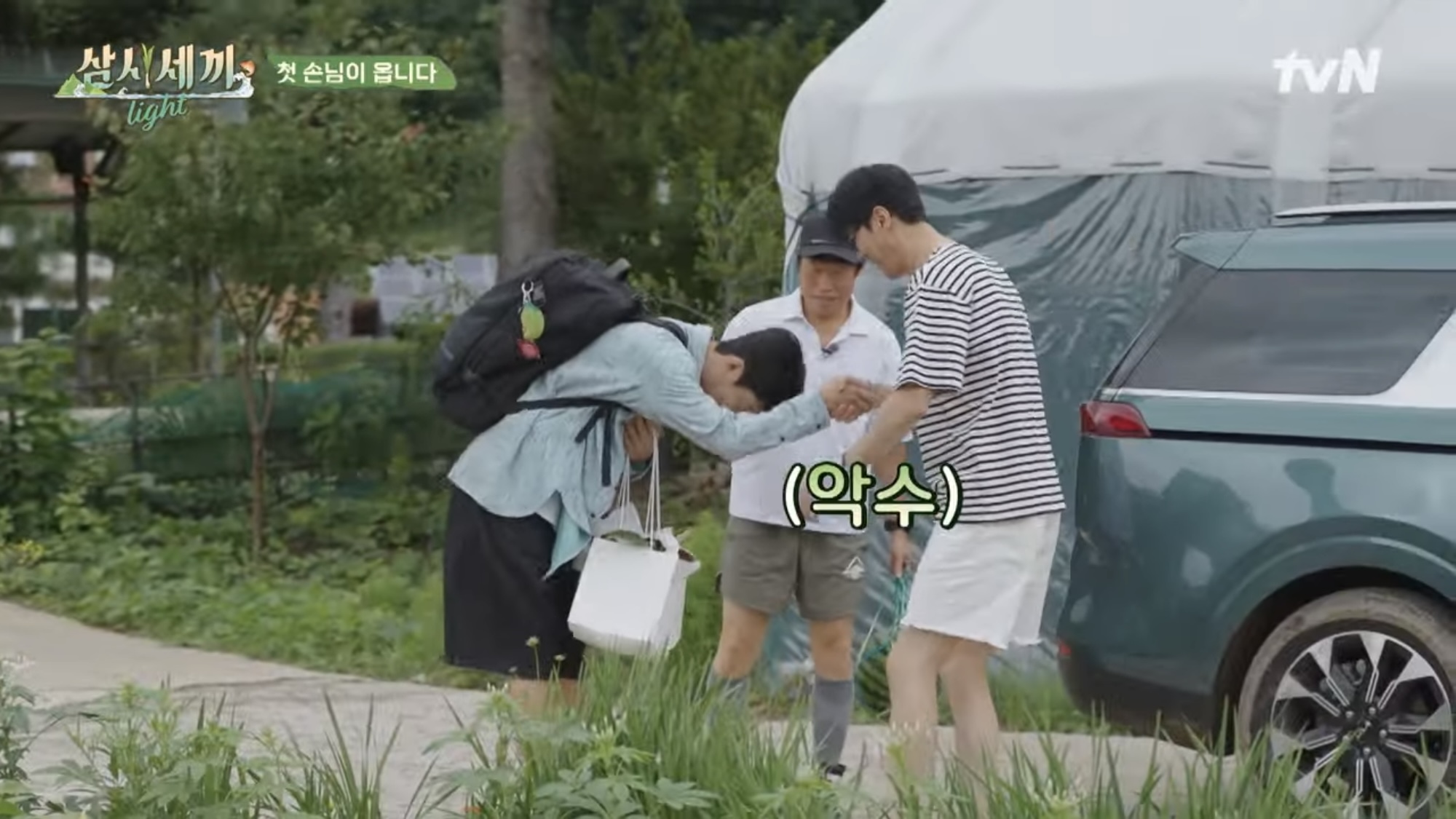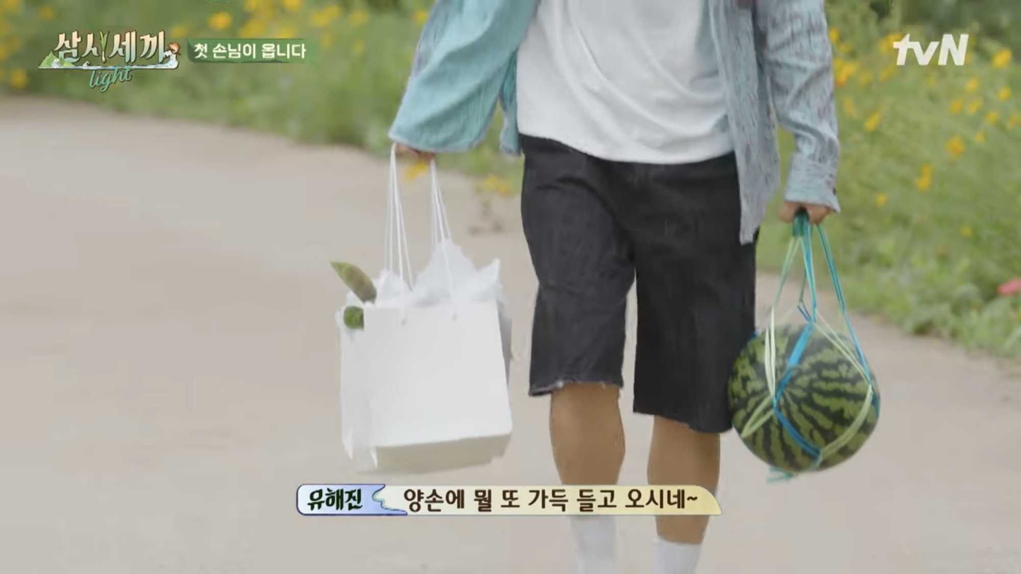 곧이어 양손 가득 무겁게 선물을 챙겨가는 임영웅의 센스와, 게스트가 임영웅이란걸 확인하고 깜짝 놀란 차승원과 유해진의 모습, 또 서로를 신기해 하며 첫인사를 건네는 모습도 눈에 띄었다.