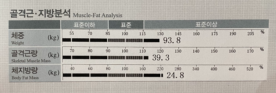 남편의 골격근량 37 ㅡㅡㅡ> 39.3 (2.4kg 증량)