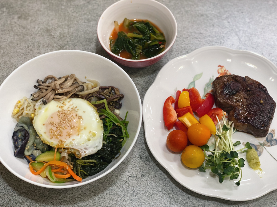 두번째 사진은 비빔밥과 소고기 스테이크다.