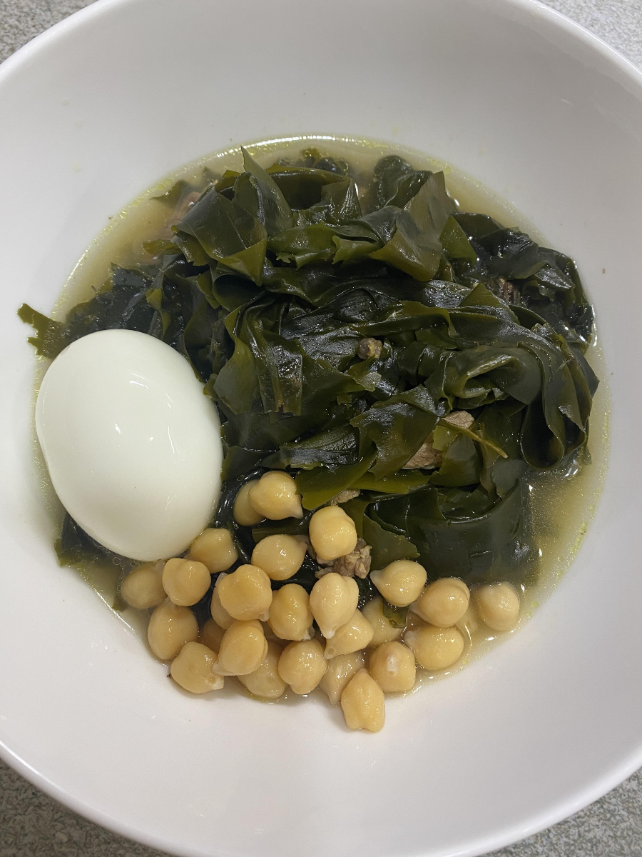 저녁으로 먹은 것들이다. 포두부 또띠아와 미역국에 삶은계란 + 병아리콩 (귀찮아서 대충 때운 날ㅎㅎ)