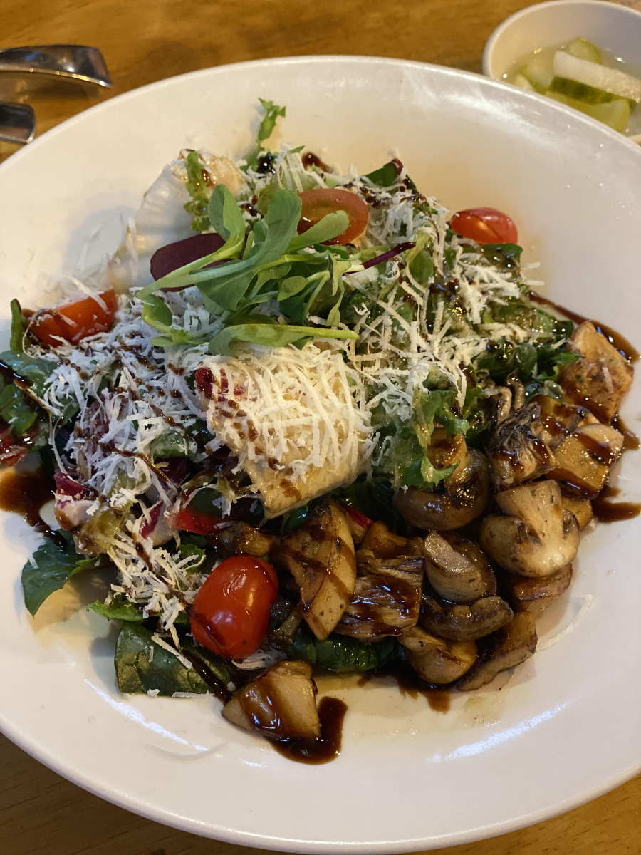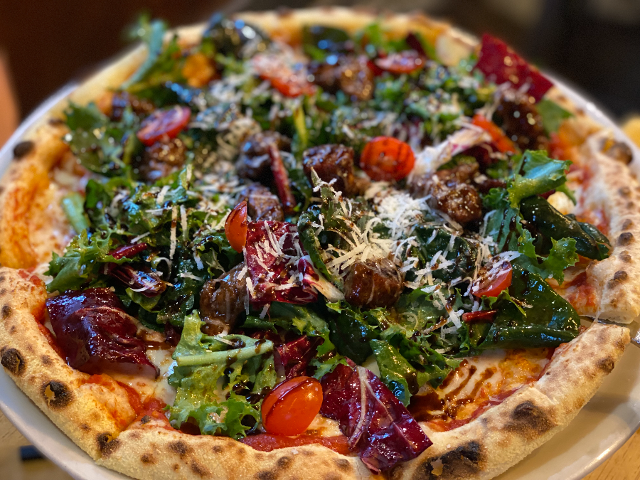 이번 방문에서 최고로 기대했던 메뉴, 바로 스테이크 샐러드 피자였어요. 피자 위에 신선한 샐러드와 육즙 가득한 스테이크가 조화를 이루어 환상의 맛을 선사했답니다. 적당한 두께에 쫀득한 피자 도우는 씹을 때마다 기분 좋게 쫀득거리면서 부드러웠고, 화덕의 훈연된 빵 향이 더욱 돋보이게 했어요.