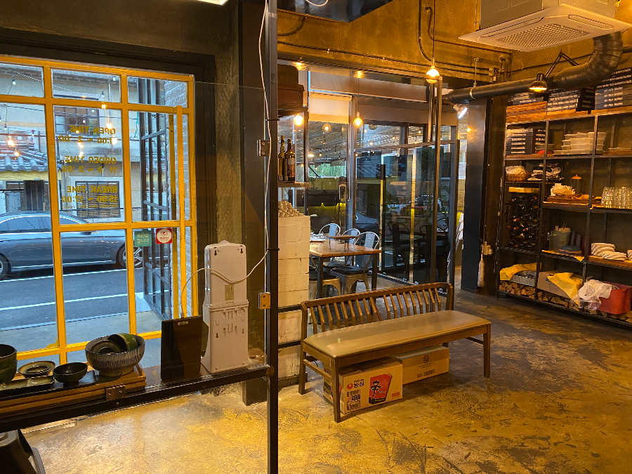 가게 내부로 들어서니 따뜻한 분위기의 인테리어가 눈에 띄었어요. 노란색 계단과 타일로 꾸며진 화덕이 인상적이었죠. 화덕의 공간이 따로 있어 화덕피자의 훈연된 맛이 한층 더 살아나는 느낌였어요. 1층과 2층으로 나누어진 공간 배치는 프라이빗한 분위기를 제공해 더욱 편안한 식사를 즐길 수 있었답니다.