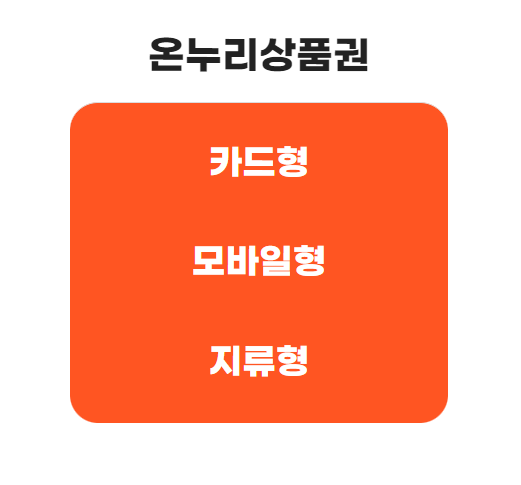 온누리 상품권은 총 세 가지 종류로 나뉩니다. 카드형, 모바일형, 지류형 입니다.