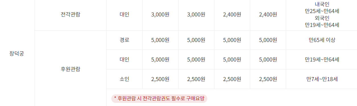 *** 창덕궁은 후원과 전각을 각각 결제해야 하며 온라인 예약 하는 것은 후원 입장권만 해당합니다.***